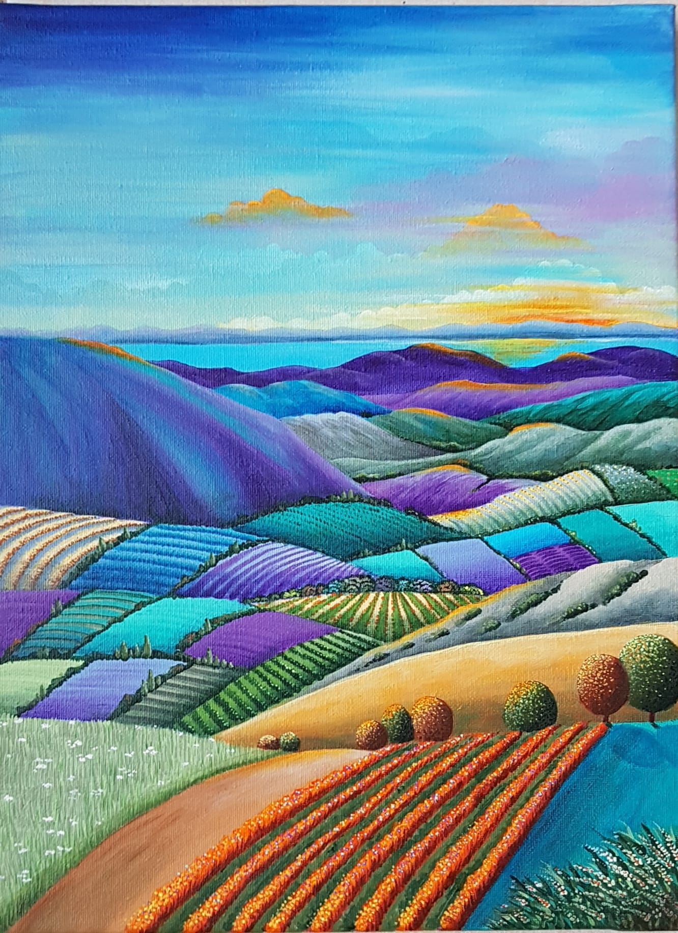 סוג: ציור נאיבי על קנווס עם צבעי אקריליק